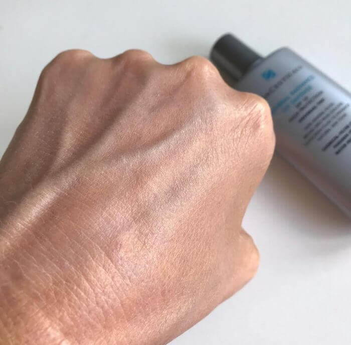 Da den indeholder en smule farve, skal man lige huske at ryste flasken inden brug. Farven er let og tilpasser sig hudtonen, så den får en fin, frisk og naturlig glow. Det er også en super makeupbase og beskytter samtidig huden med det mikrofine, fysiske filter mod UV-strålerne.